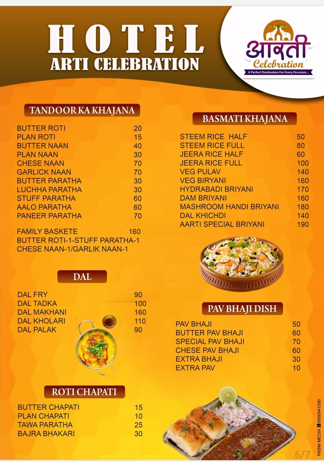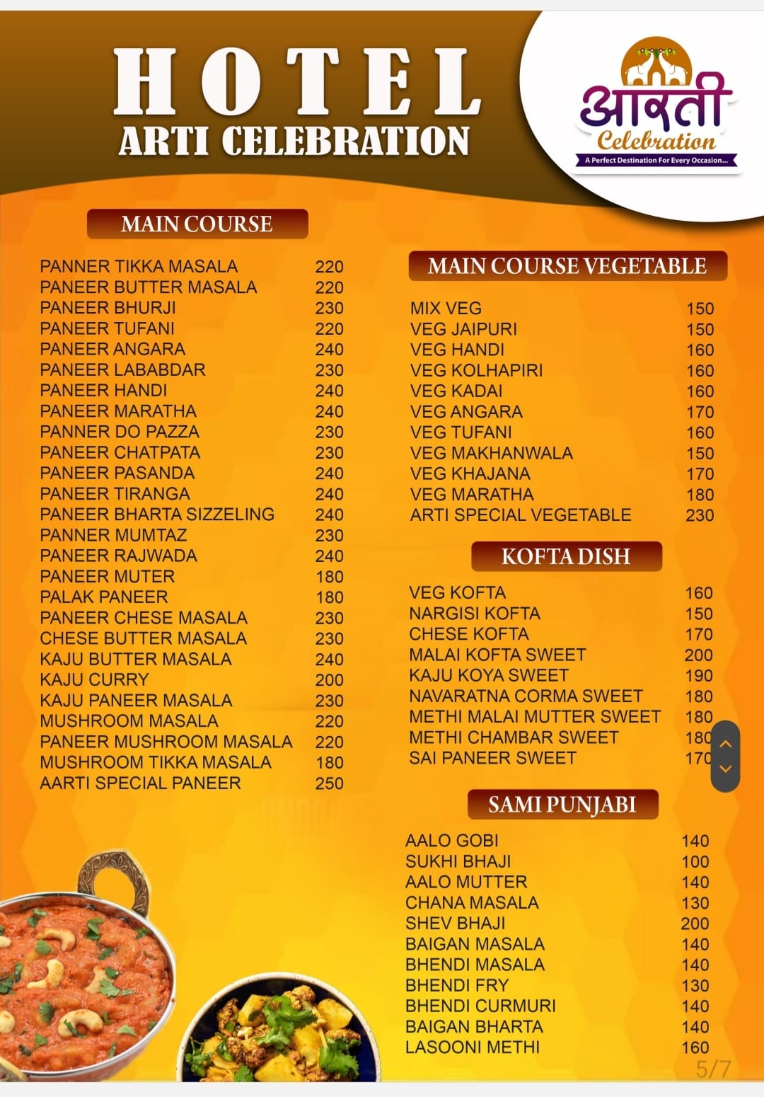 The Restaurant of Hotel Aarti Celebrations have one living room, one bedroom with individual balcony. The room is all modern amenities. Bathrooms are equipped all facility. Explore Book Now