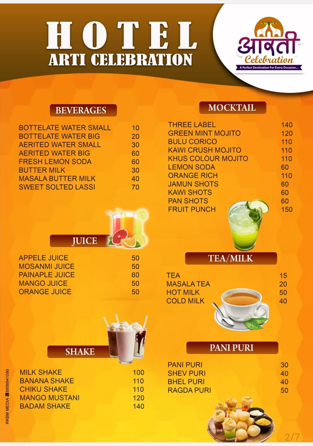 The Restaurant of Hotel Aarti Celebrations have one living room, one bedroom with individual balcony. The room is all modern amenities. Bathrooms are equipped all facility.
